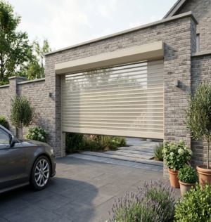 Используется профиль усиленный стальной высотой 75 мм. Короб с усиленными боковыми крышками. Полотно с усиленной нижней планкой. Возможны любые цвета по желанию заказчика. Запорное устройство выбирается индивидуально.