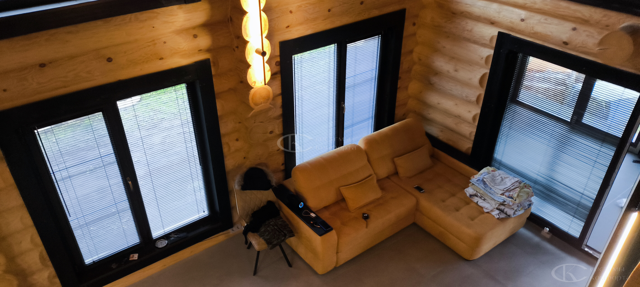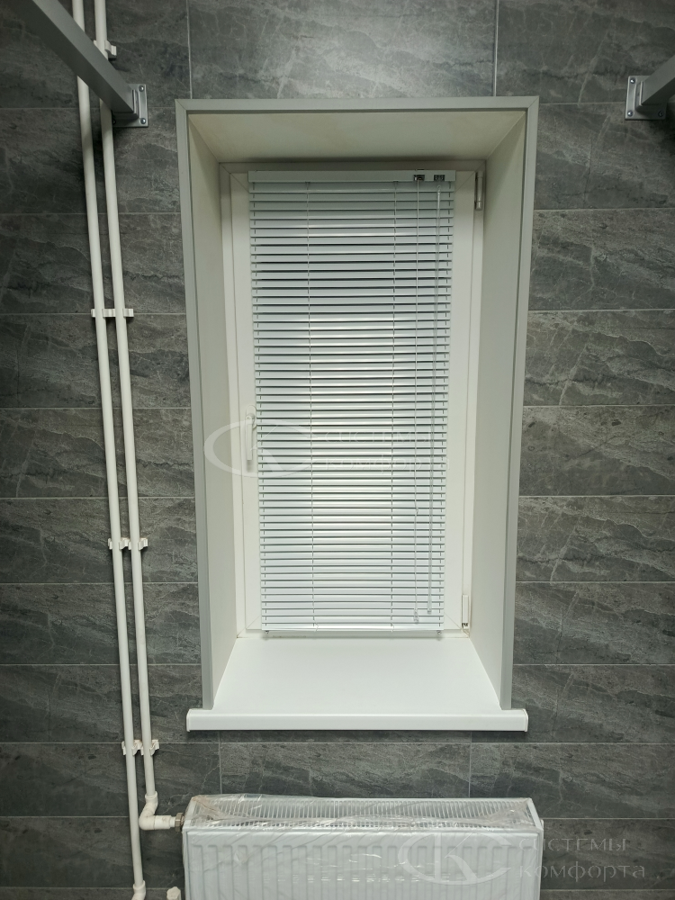 Жалюзи можно собрать полностью или оставить опущенными, но повернуть планки параллельно подоконнику — так свет будет беспрепятственно проникать в помещение.