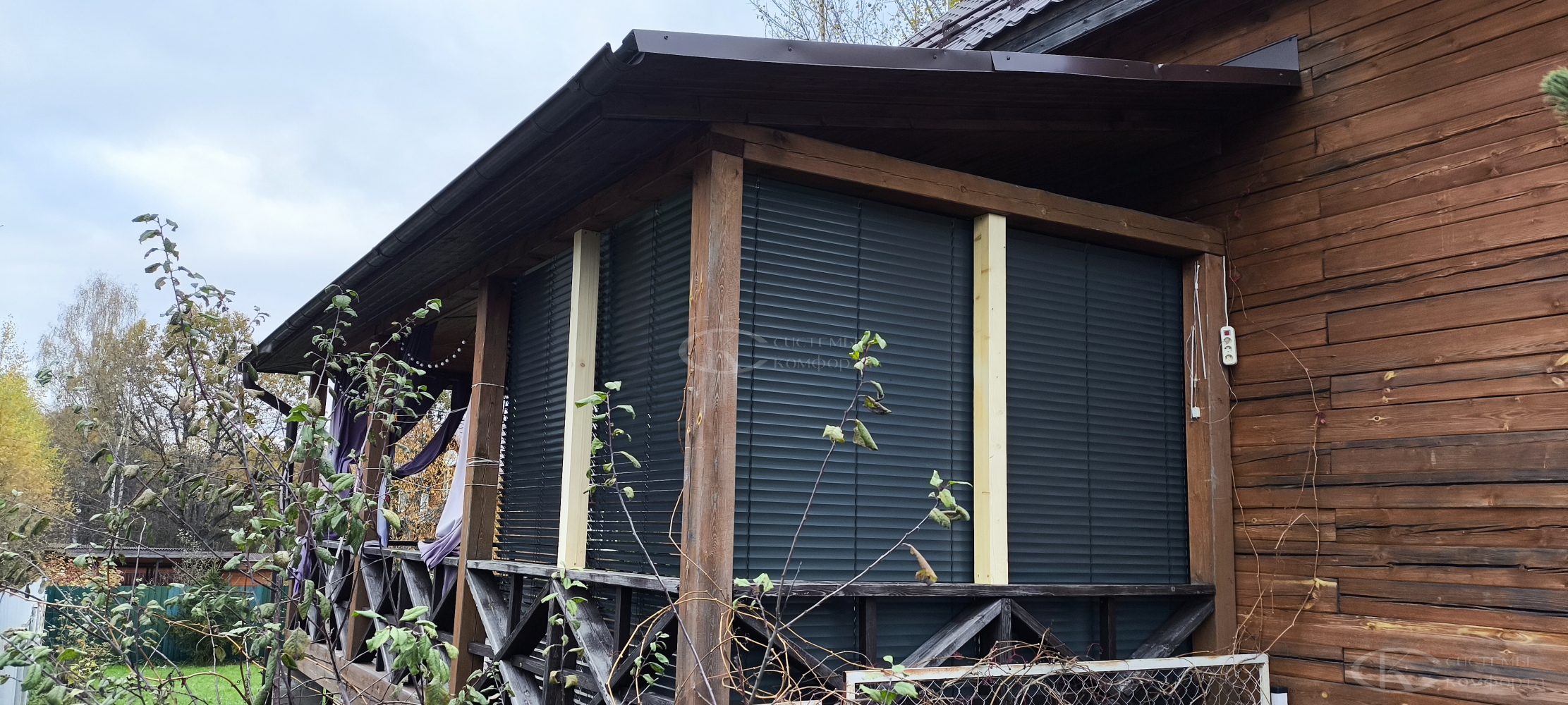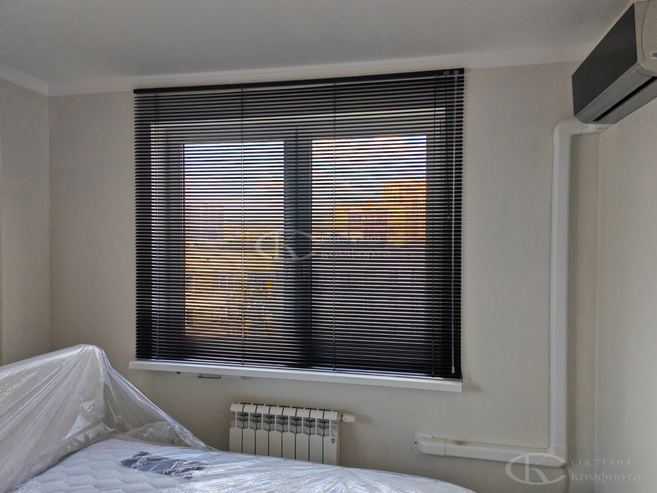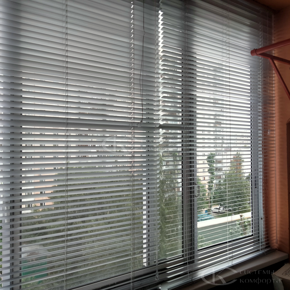 Компания «Системы комфорта» предлагает горизонтальные жалюзи с цветными алюминиевыми ламелями и перфорацией (опционально). Краска, которая используется в производстве, сертифицирована (экология), не выгорает на солнце и не истирается весь срок службы изделия.